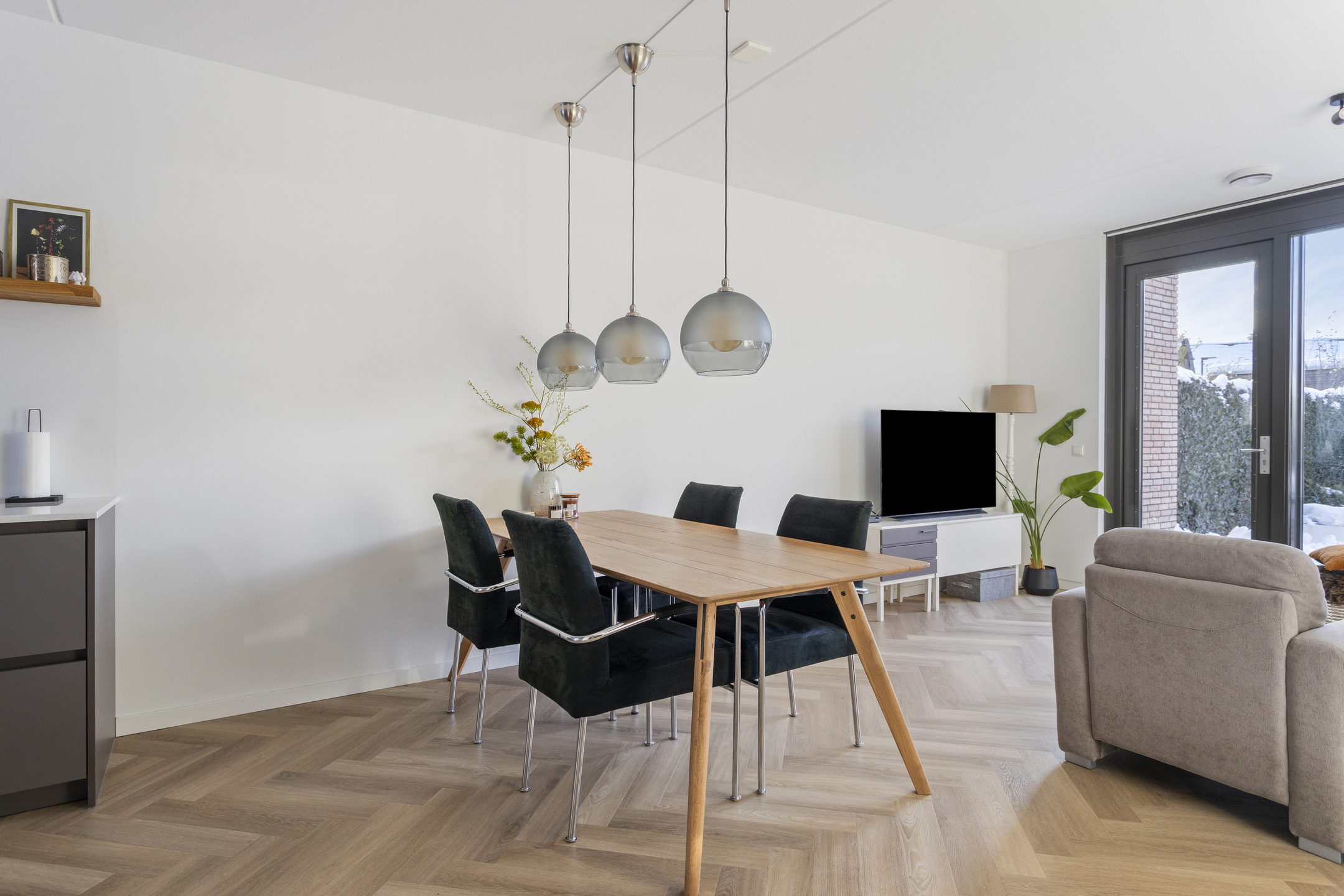De gehele begane grond is afgewerkt met een moderne pvc-vloer met comfortabele vloerverwarming, wat zorgt voor een strakke uitstraling en aangenaam wooncomfort.