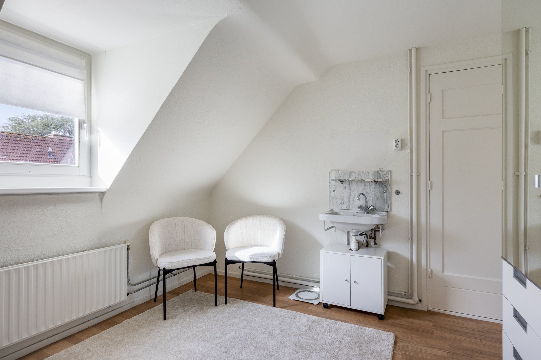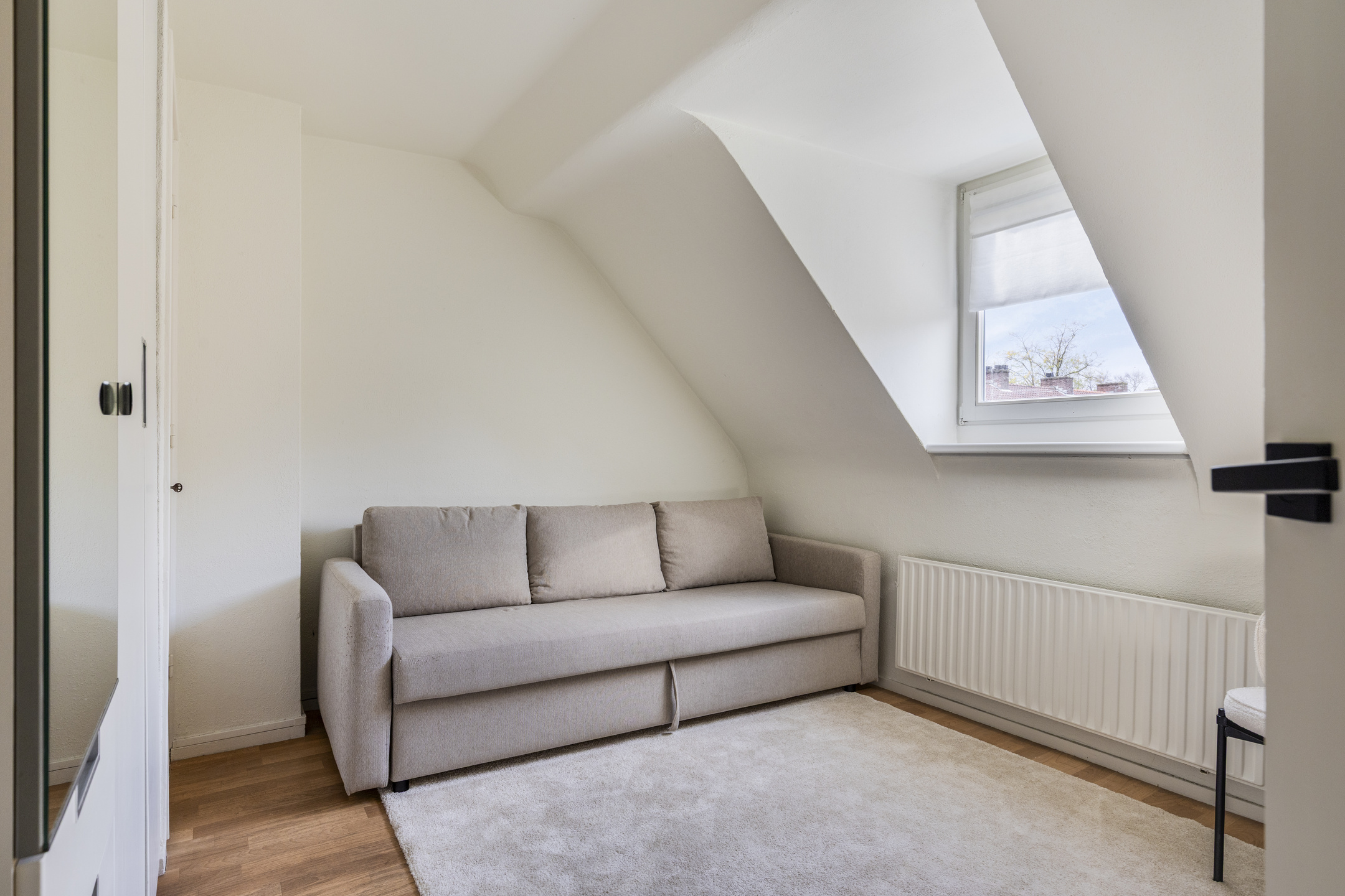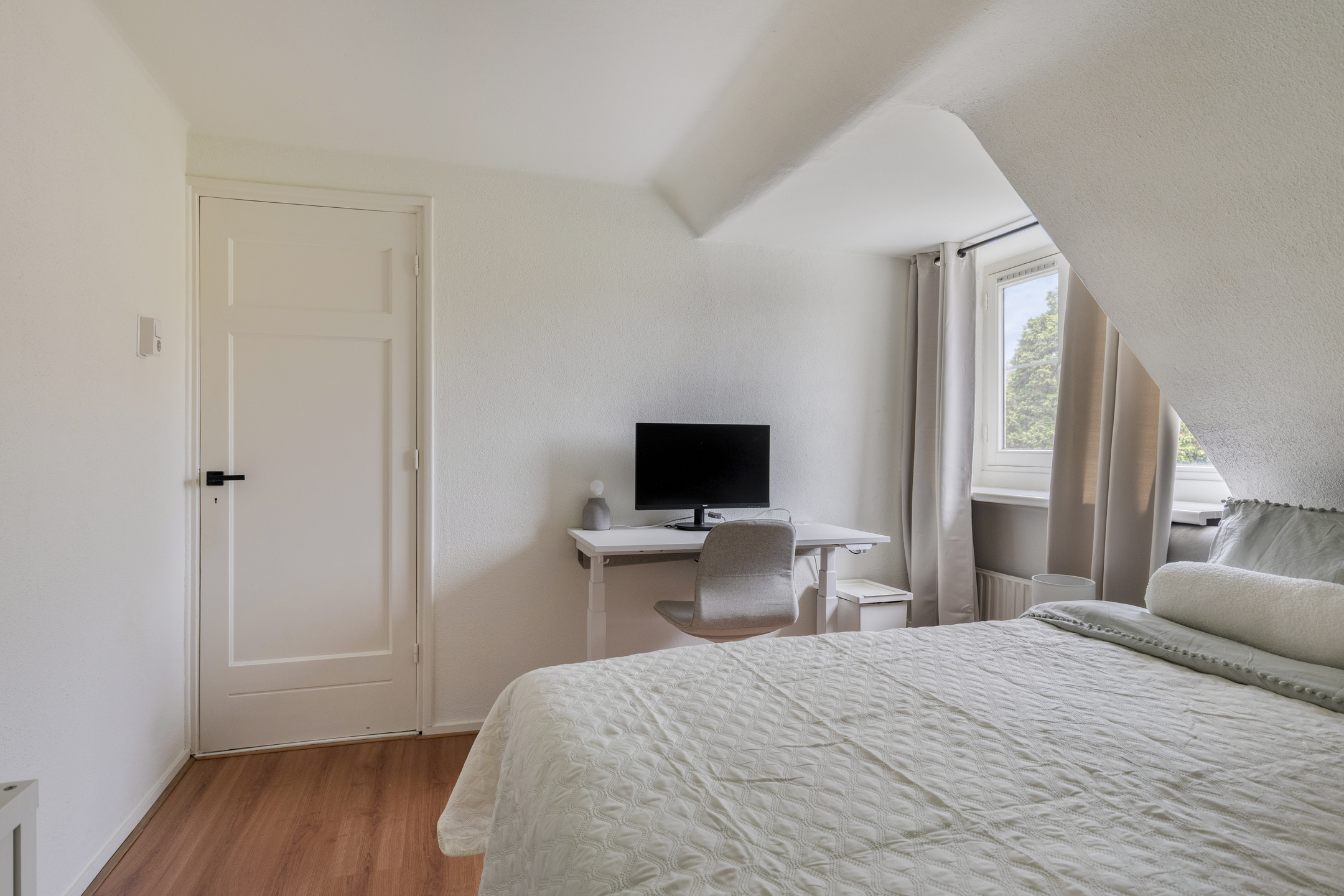 De tweede slaapkamer ligt daarnaast en heeft eveneens een dakkapel.