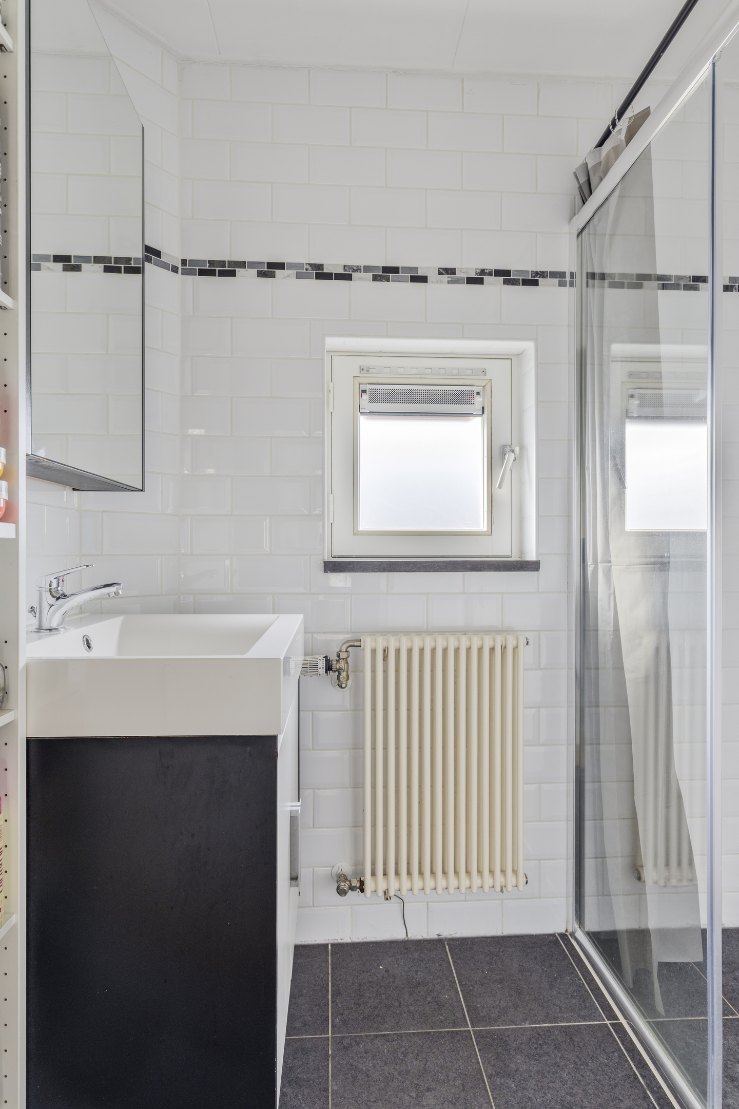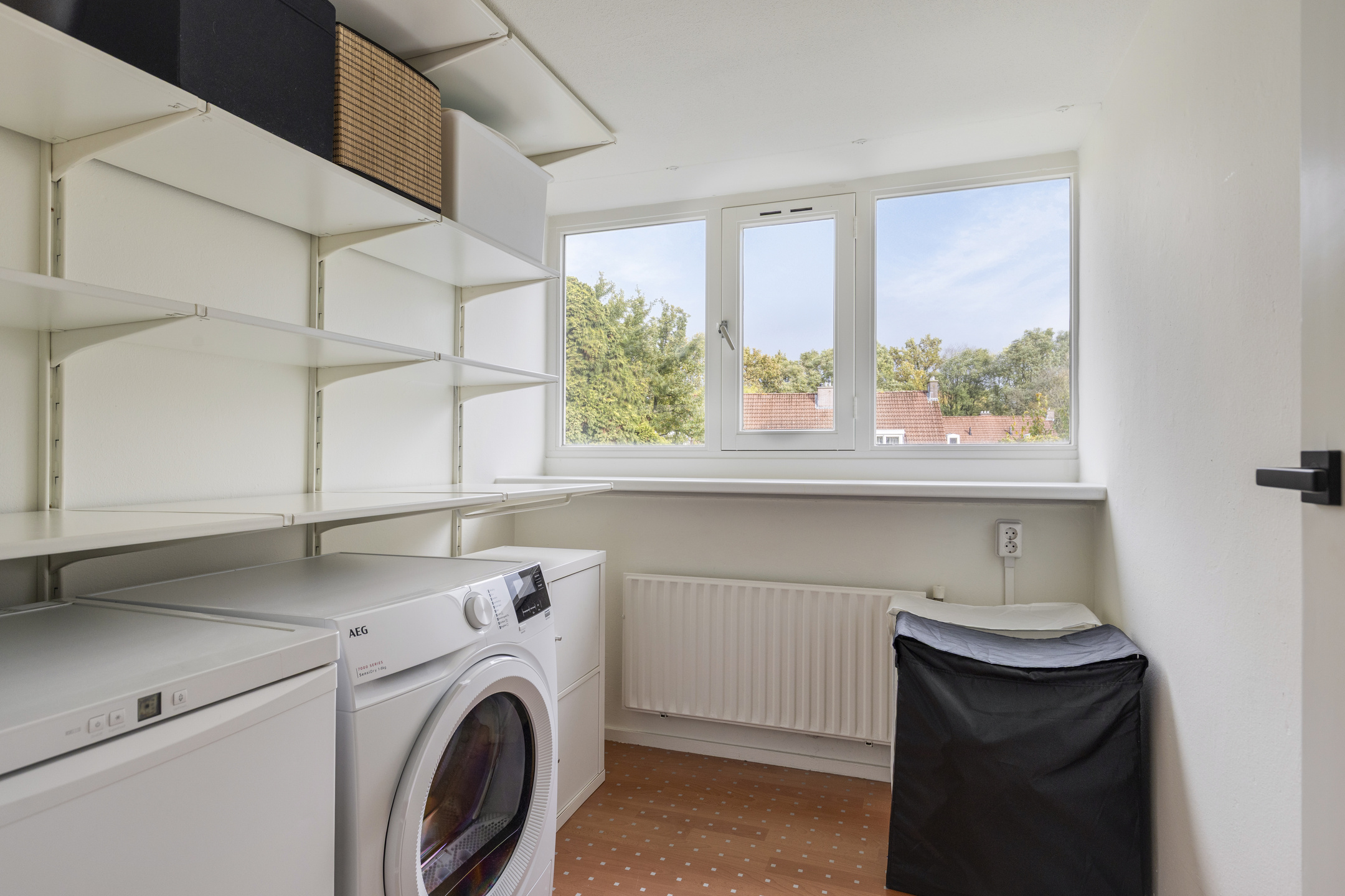 Het raam zorgt voor daglicht en natuurlijke ventilatie, waardoor de ruimte fris en licht blijft.